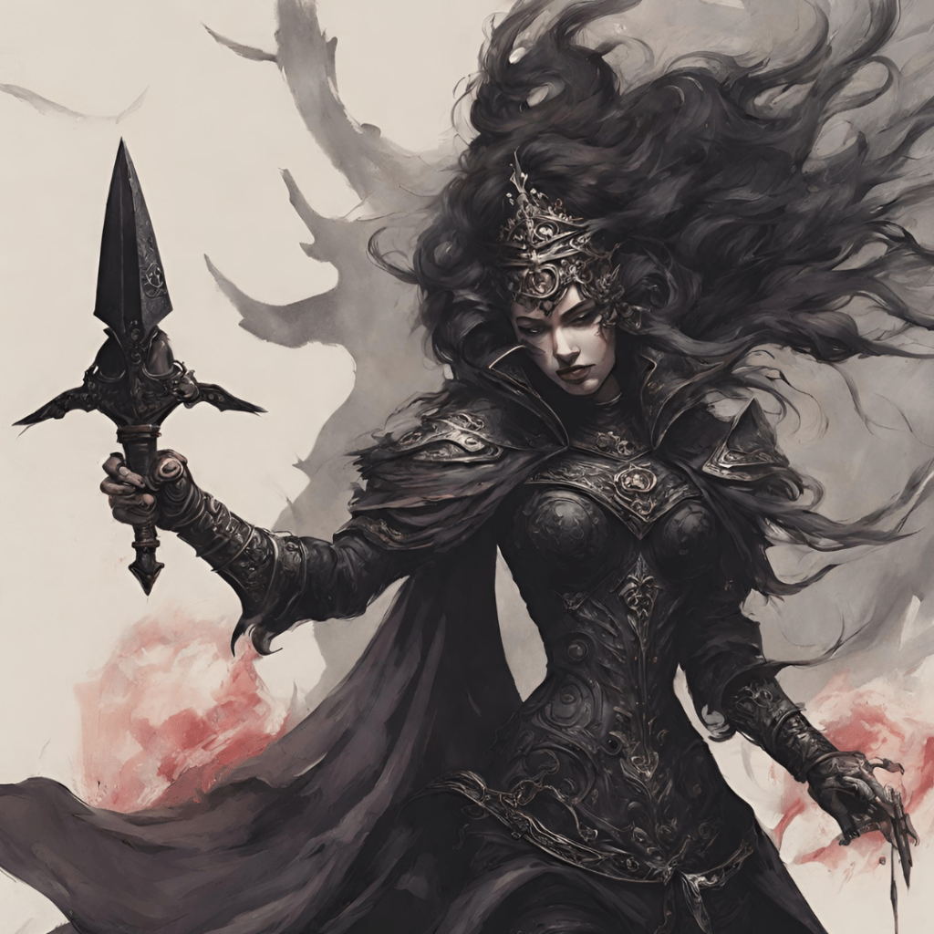 ella esta en una batalla con una daga, protegiendo el palacio.